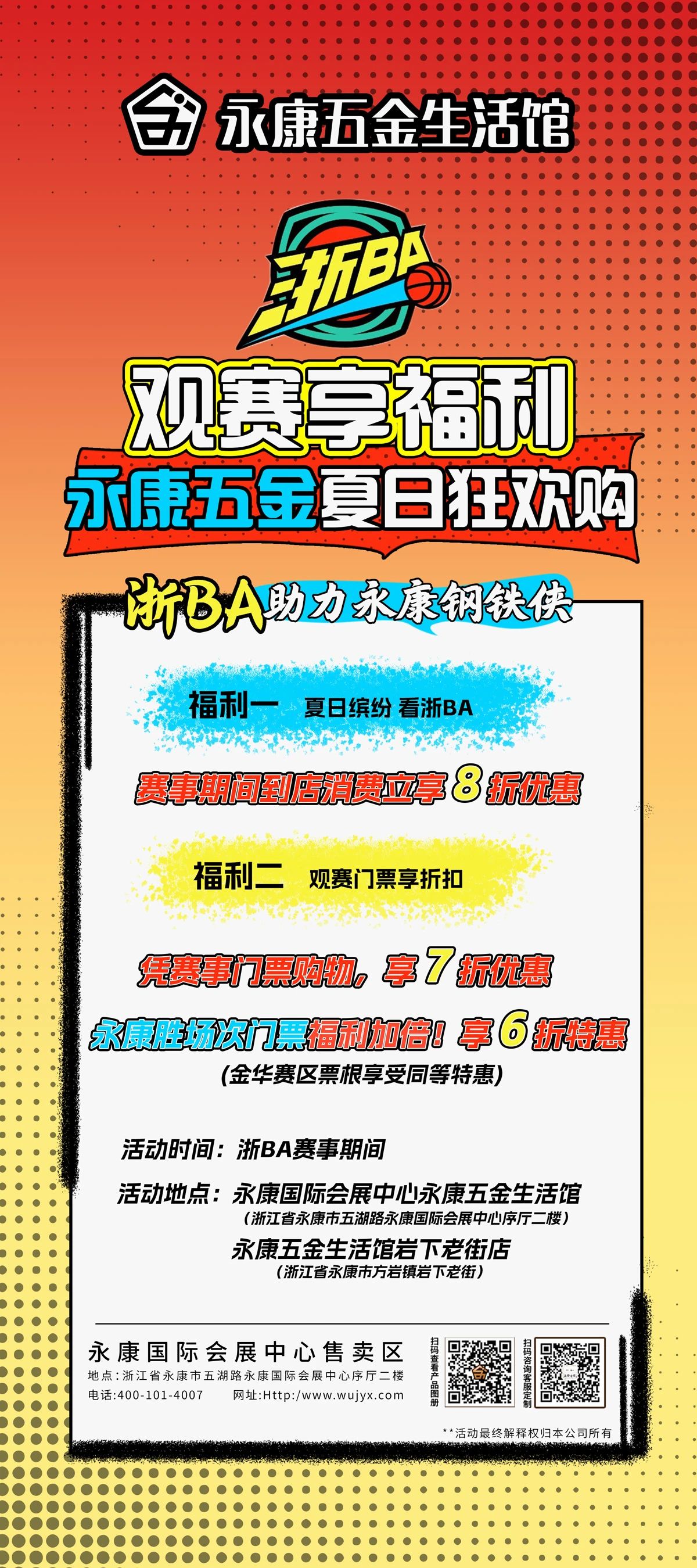 · 觀賽福利!憑“浙BA”門票來(lái)五金生活館最低可享6折...